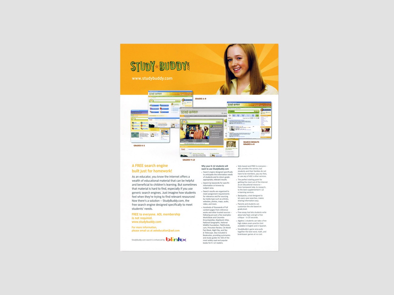 Branding and layout design in partnership with Fervor Creative for AOL’s Study Buddy. AOL’s Study Buddy was a search engine for kids that returns teacher-approved content that’s safe, age appropriate and content specific.