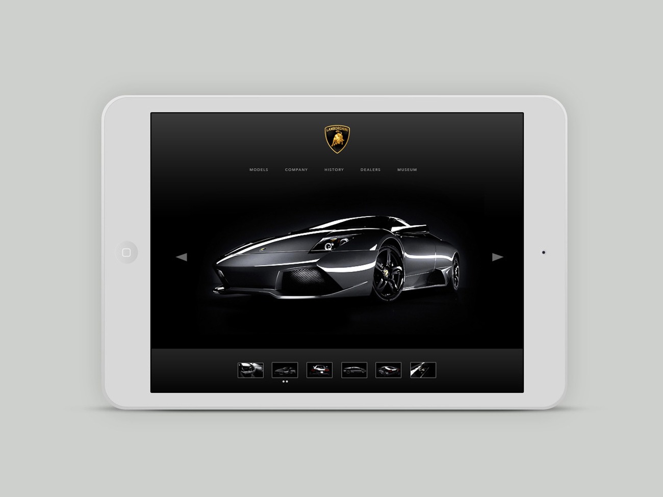 Exploratory web design concepts for the extreme super sports car maker, Lamborghini. This design was sent to the headquarters in Italy to entice a reaction and gain initial feedback from the auto maker.